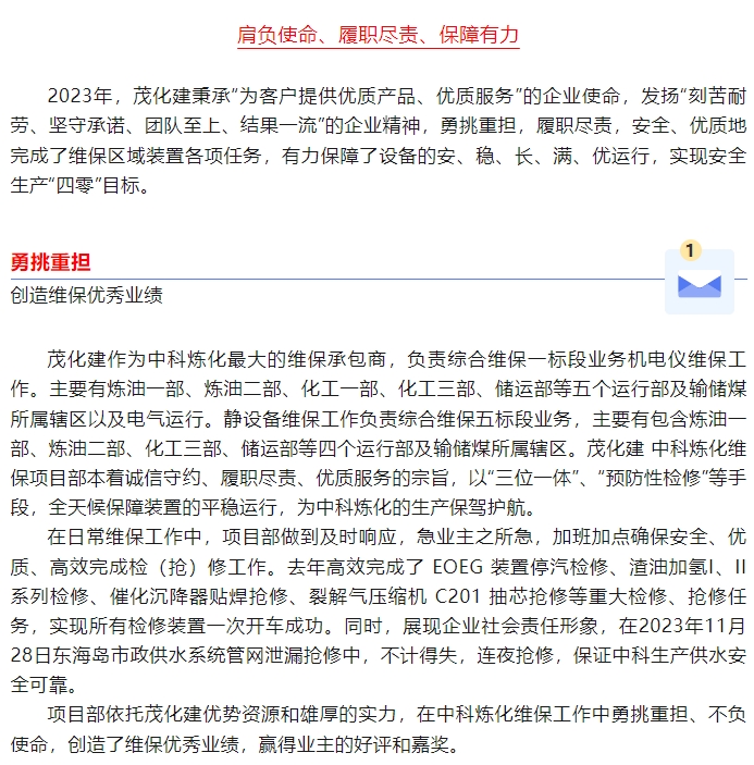 喜報:榮獲中科煉化“2023年度業(yè)務外包星級承包商”稱號