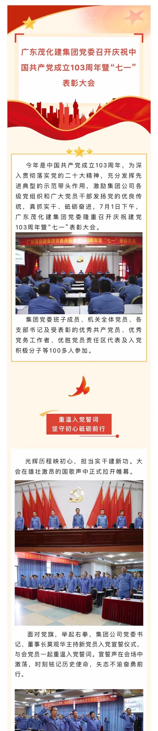 廣東茂化建集團(tuán)黨委召開慶祝中國共產(chǎn)黨成立103周年暨“七一”表彰大會(huì)