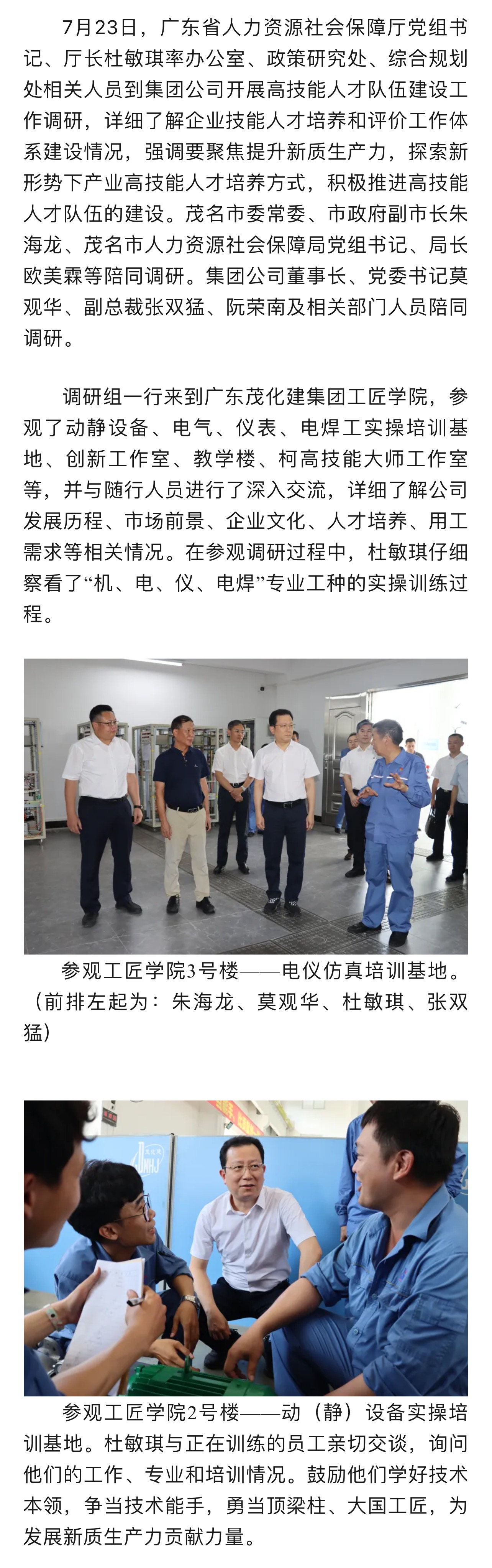 廣東省人社廳到集團(tuán)公司調(diào)研高技能人才隊(duì)伍建設(shè)工作