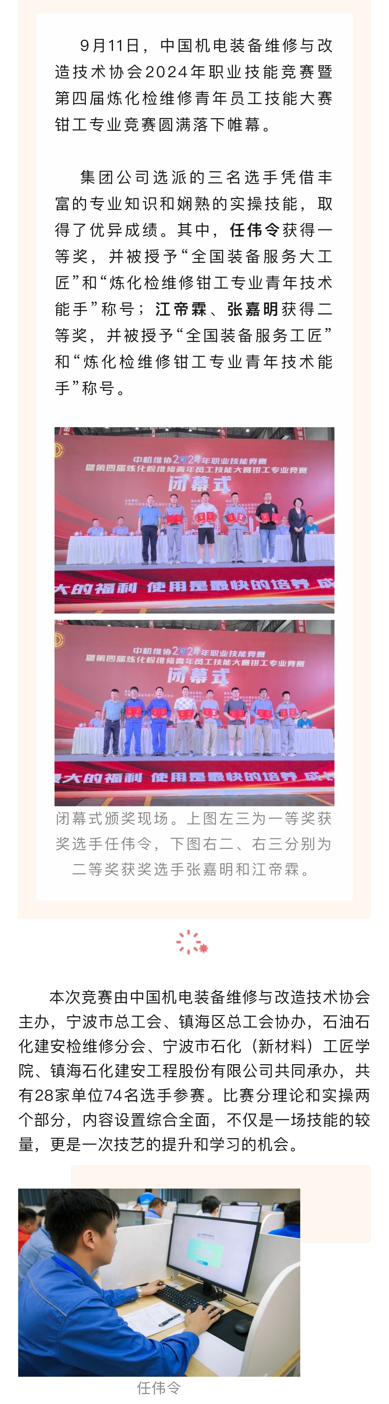 喜報(bào):集團(tuán)公司在中機(jī)維協(xié)2024年職業(yè)技能競(jìng)賽暨第四屆煉化檢維修青年員工技能大賽