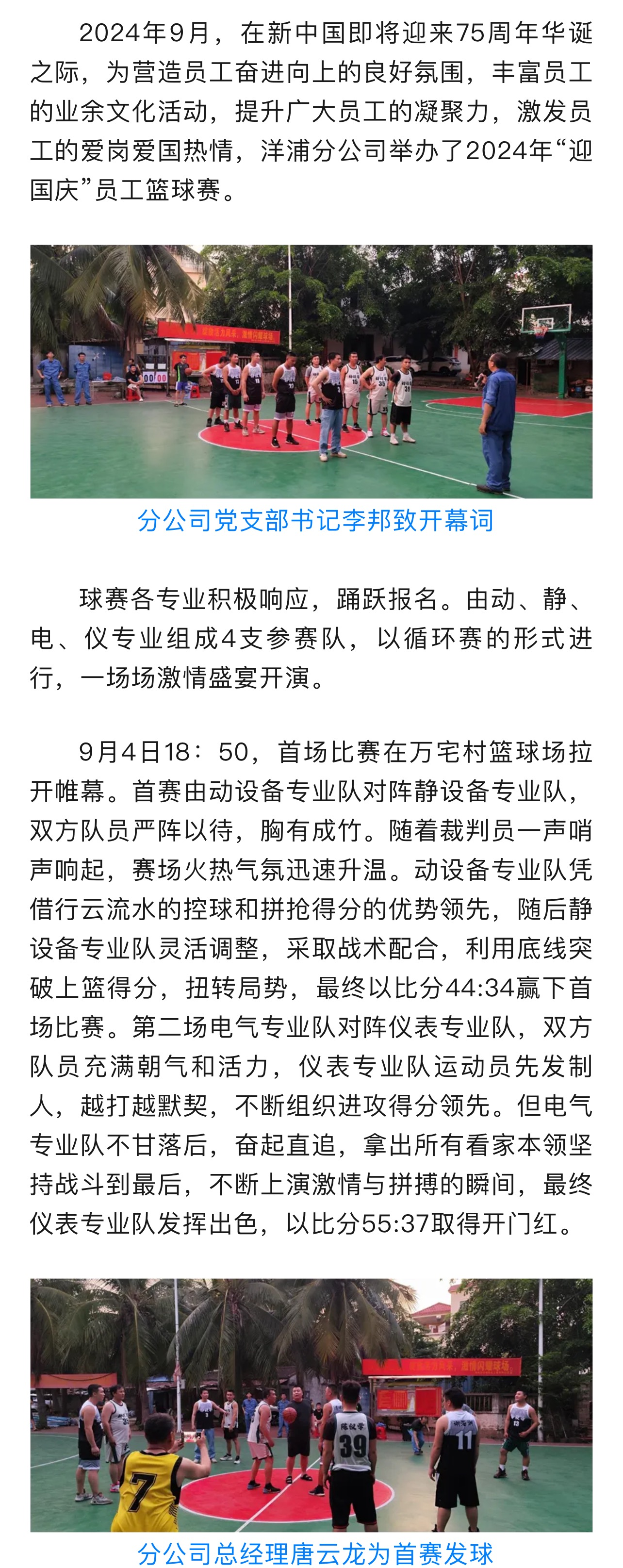 洋浦分公司員舉辦工籃球賽迎國慶