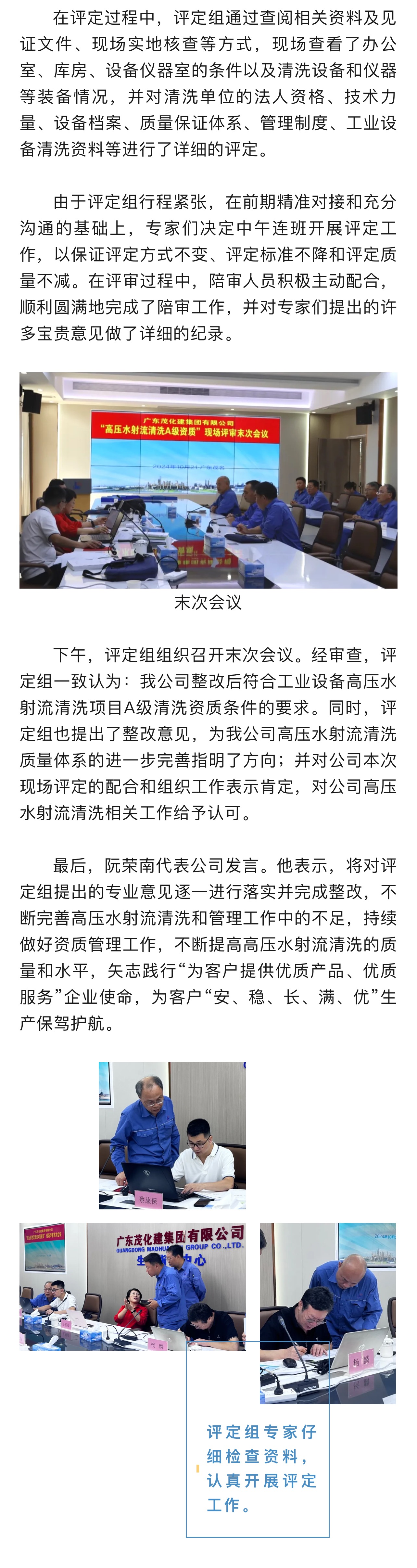 集團(tuán)公司順利完成工業(yè)設(shè)備高壓水射流清洗A級清洗資質(zhì)現(xiàn)場評定