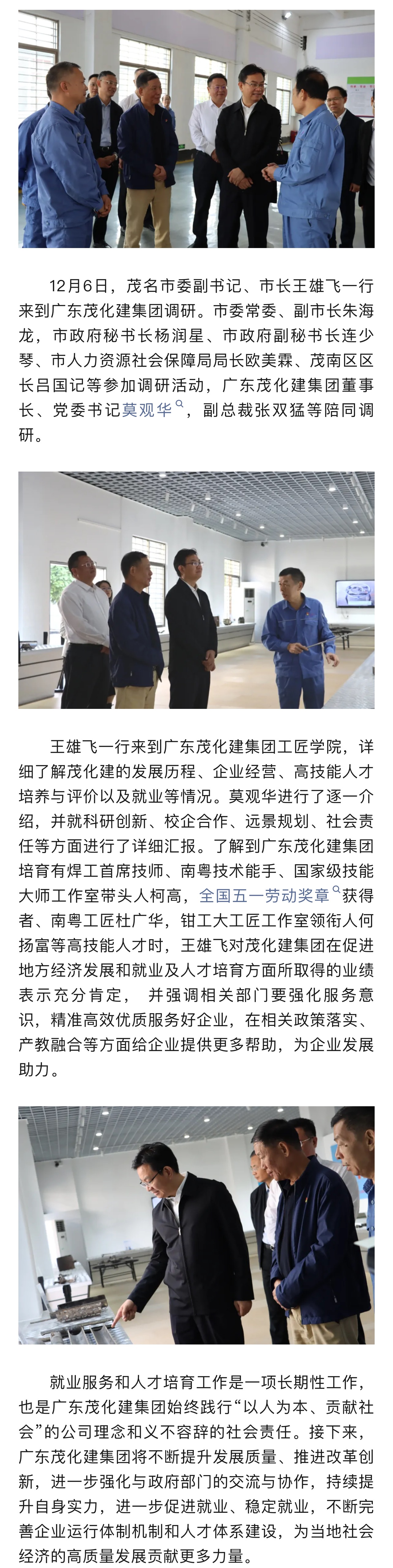 茂名市委副書記、市長王雄飛到廣東茂化建集團視察指導工作