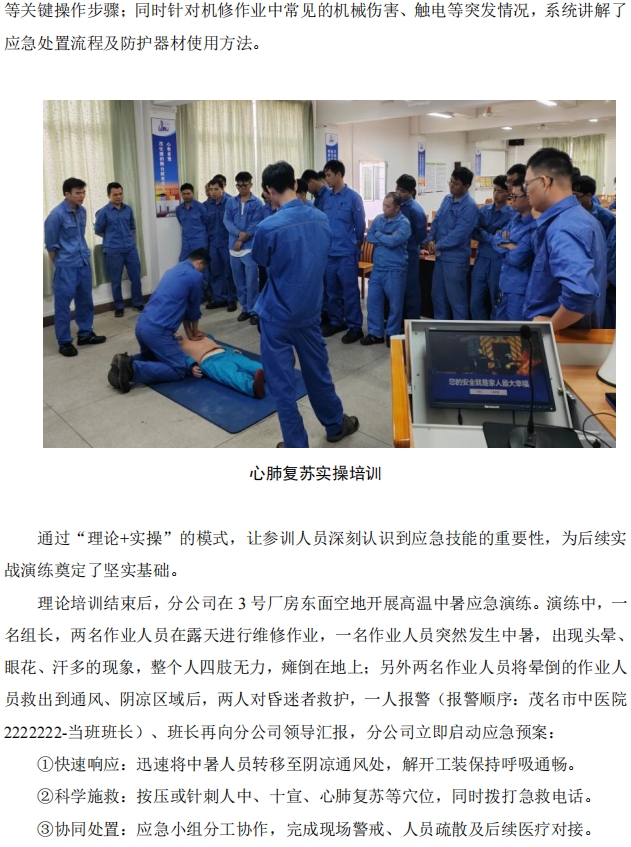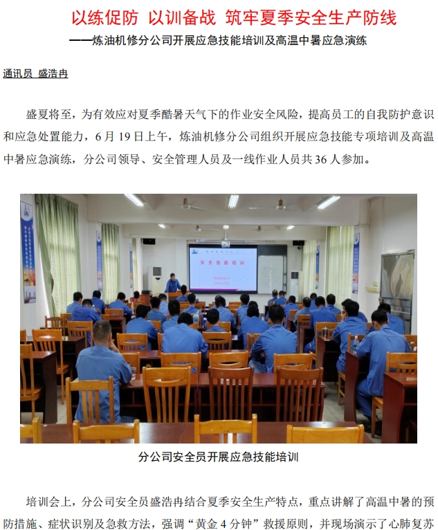 煉油機修分公司開展應(yīng)急技能培訓(xùn)及高溫中暑應(yīng)急演練