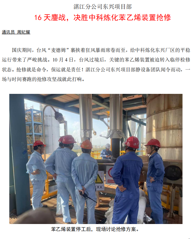 湛江分公司東興項目部:16 天鏖戰(zhàn),決勝中科煉化苯乙烯裝置搶修