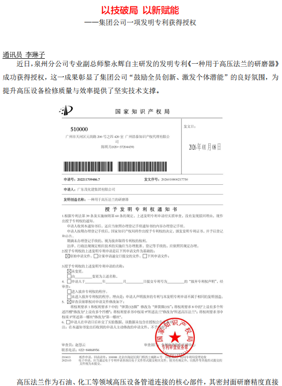 以技破局 以新賦能——集團(tuán)公司一項發(fā)明專利獲得授權(quán)
